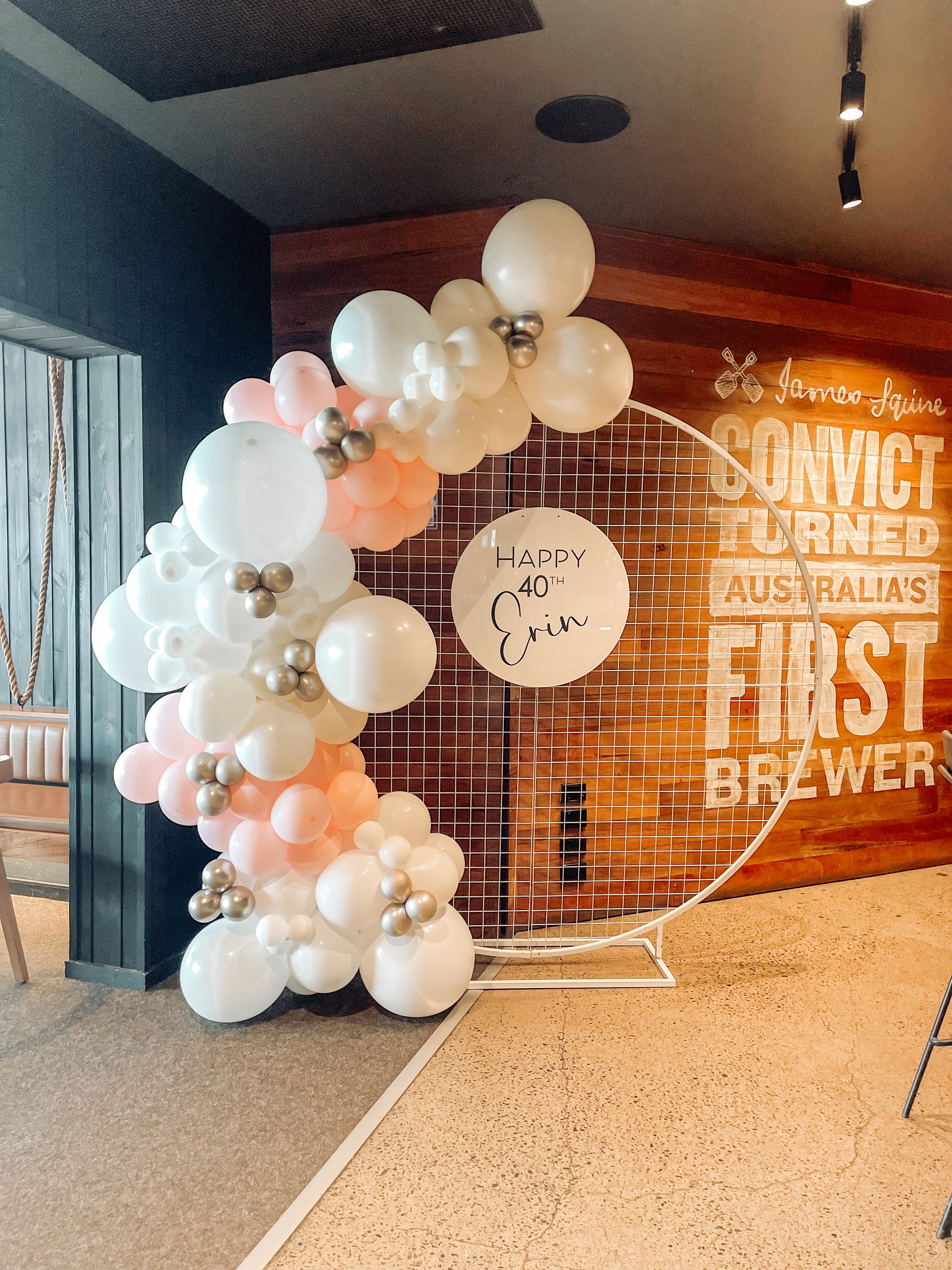 2m White Mesh Hoop Hire (better base) backdrop ONLY