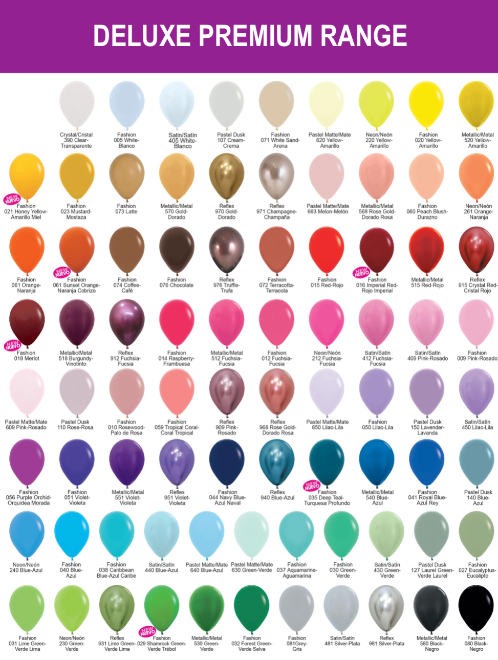 Deluxe Balloon Colour Chart